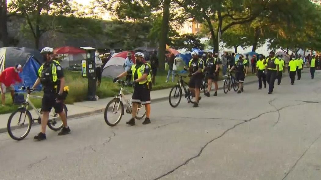 At least three activists were handcuffed and taken away from the encampment at lamport stadium before city officials moved out.
